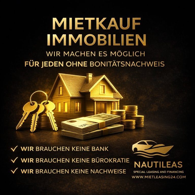 Exklusiv und unkompliziert – Mietkaufangebote unabhängig von Bonität, für Kunden ab 18 Jahren. Wir verbinden Sie mit privaten Finanziers diskret und verlässlich. Für Immobilien aller Art, PKW im Mittelklassesektor, Luxuswagen aber auch Boote und Yacht europaweit!